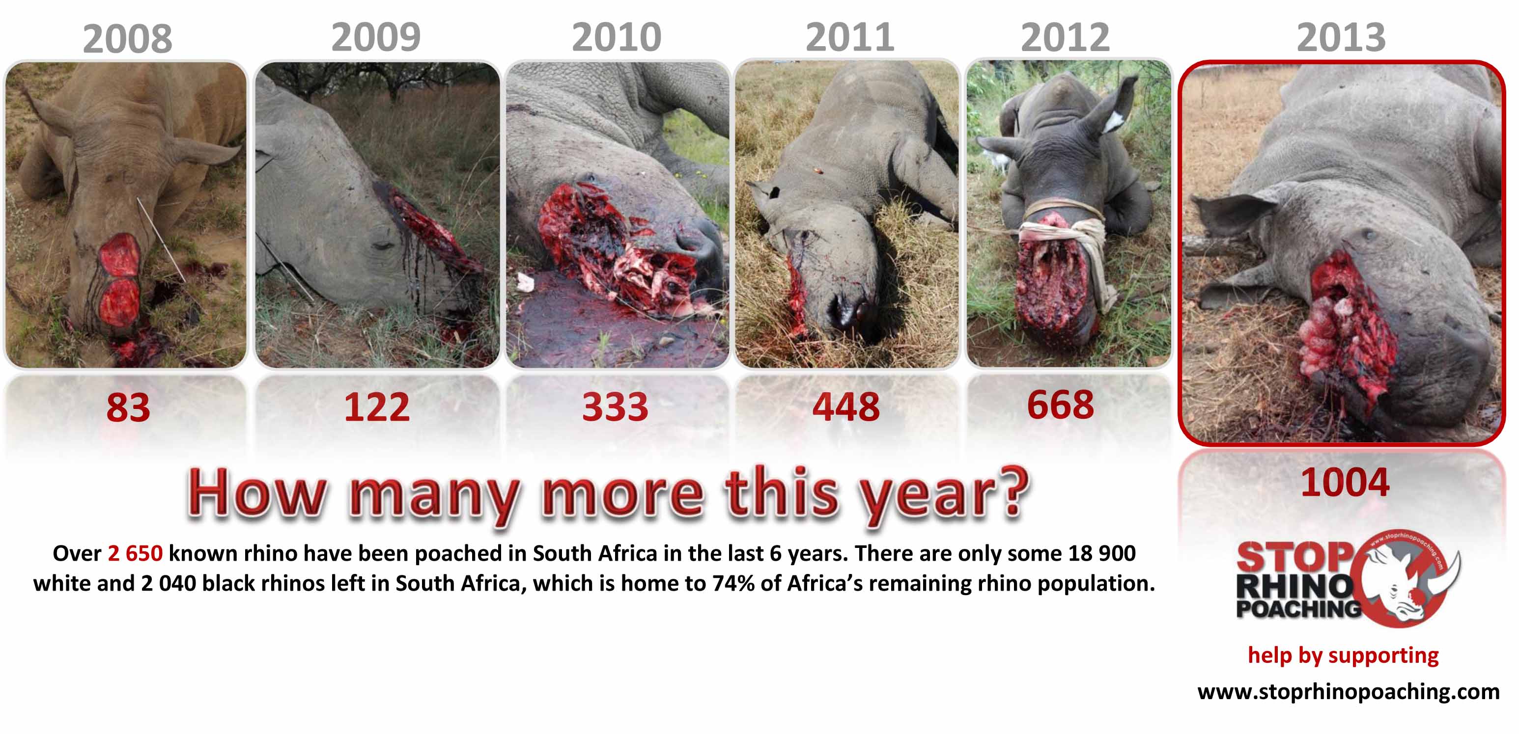 However, it might just be worth having a quick look at some numbers. 745 rhinos were killed due to illegal poaching in 2012 in Africa, which amounts to approximately two rhinos each day, mostly for their horns. In South Africa alone, 461 rhinos were killed in just the first half of 2013. Rhino horns are valued for their medicinal uses and for their supposed cancer-curing powers. Of course, rhino horns have no pharmacological value at all, making their harvest even more tragic. The five non-breeding rhinos that Namibia allows to be hunted each year seem paltry in comparison, especially since they are older males who can no longer contribute to population growth.